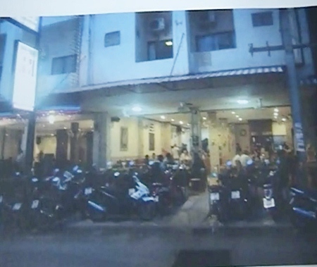 This took place in a restaurant on soi Buakhao, the men were drunk and having something of a party until the police arrived and confiscated two decks of cards and two score pads before escorting the men to the chonburi police station as that is where the police officers were from.