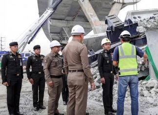 Military Disaster Relief Center inspects Rama 2 Road after construction beam...