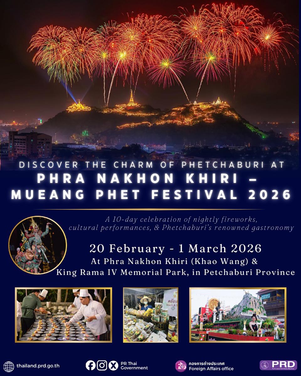 PHETCHABURI, Thailand – The 39th edition of Phra Nakhon Khiri – Mueang Phet Festival will take place from 20 February to 1 March 2026 at Phra Nakhon Khiri (Khao Wang) and King Rama IV Memorial Park, in Phetchaburi Province.