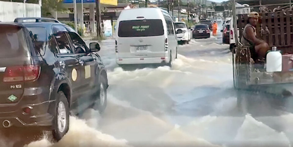 Heavy downpours caused flooding in many zones of Thalang district.