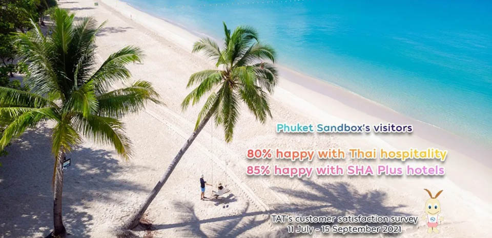 The Phuket Sandbox’s visitors survey showed 80% of respondents satisfied with the local people’s hospitality and 85% were happy with the SHA Plus certified hotels. They also rated the top five most satisfaction on: SHA Plus airport shuttle, booking service for SHA Plus airport shuttle, booking service for SHA Plus hotels, the overall quality of service at Phuket International Airport, and the health screening upon arrival in Phuket.