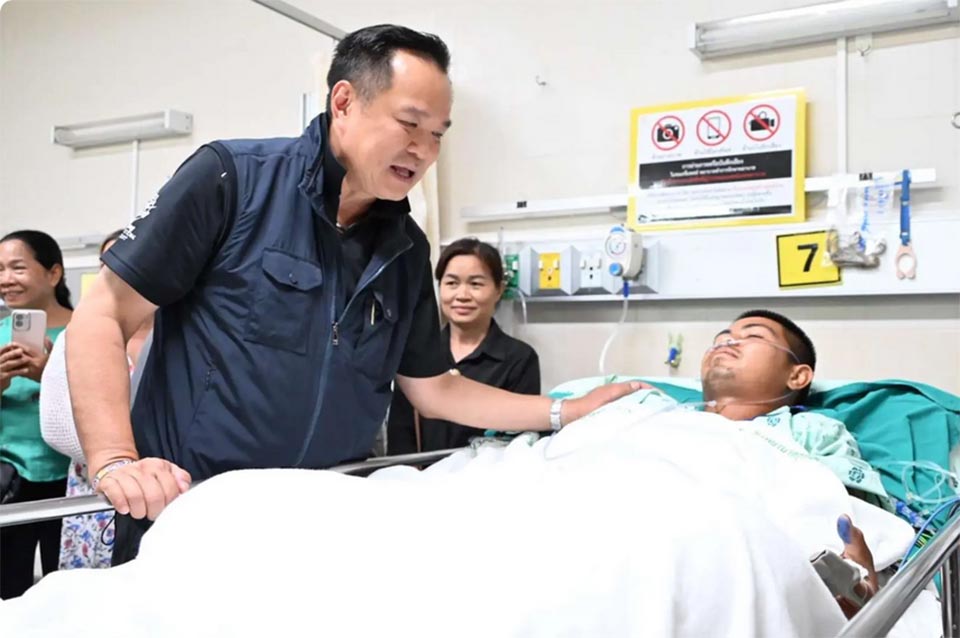 SURIN, Thailand – Prime Minister and Minister of Interior Anutin Charnvirakul visited Surin Hospital to offer support to Private Detsak Treekham, who was injured by a landmine during a security operation on the Thailand-Cambodia border.