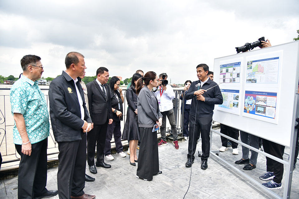 Accompanied by Agriculture Minister Narumon Pinyosinwat, the Prime Minister was briefed on the latest flood mitigation measures by officials from the Royal Irrigation Department (RID) and Bangkok Governor Chadchart Sittipunt.