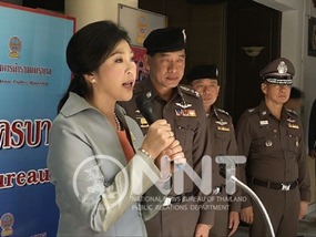 BANGKOK, 2 Jan 2014 – Prime Minister Yingluck Shinawatra visited the Metropolitan Police Bureau, delivering speeches giving the law enforcers New Year blessing, and morale boost.