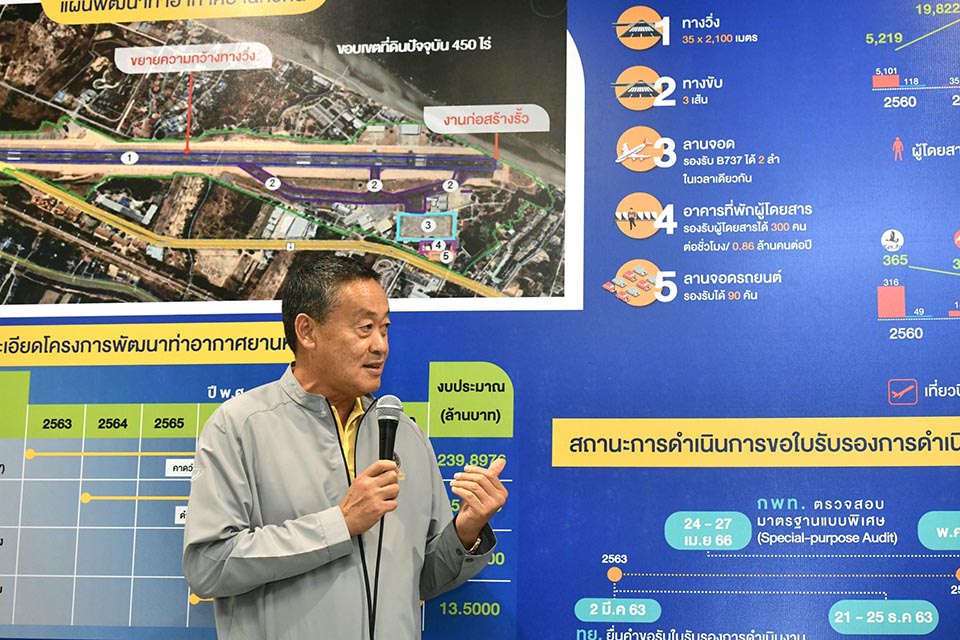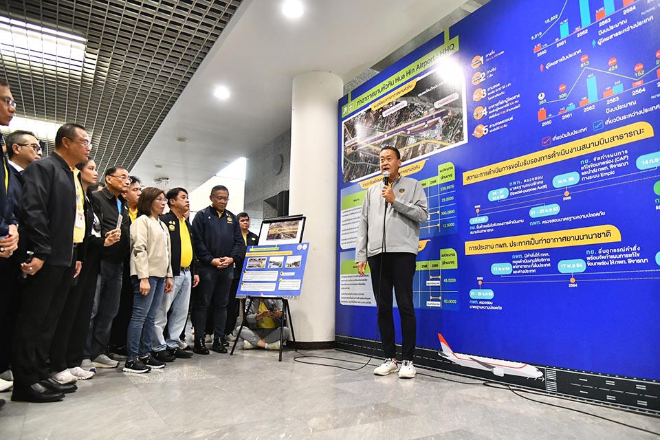 Prime Minister Srettha Thavisin’s region tour yesterday (May 13) also included a visit to Hua Hin Airport in Prachuap Khiri Khan province to review the facility’s readiness for international flight operations. A delegation of key officials from the Ministry of Transport and the Ministry of Tourism and Sports was also present at the facility.