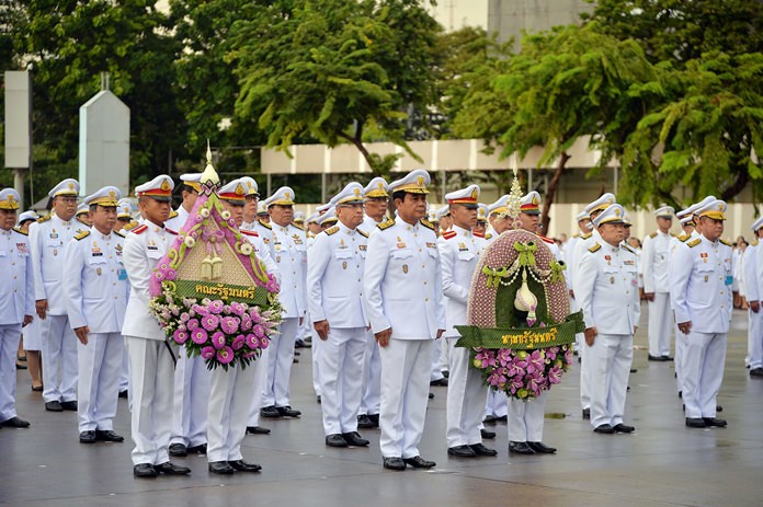 The alms-offering ritual was followed by a wreath laying and homage paying ceremony before the statue of King Chulalongkorn the Great at Royal Plaza in front of Dusit Palace in Bangkok. The ceremony was joined by members of the armed forces and students from various educational institutions.