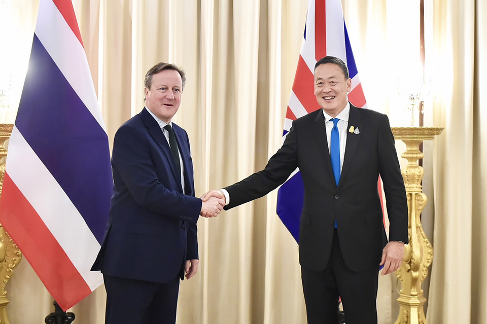 On economic cooperation, the Prime Minister underscored the Thai Government’s priority on economic revitalization through expanding foreign markets, and attracting foreign investments in a bid to increase income of the Thai people. He extended an invitation for UK to take part in advancing the Thai economy. Lord Cameron was keen to reinforce economic cooperation with Thailand, and hoped for an increase of investment between the two countries.