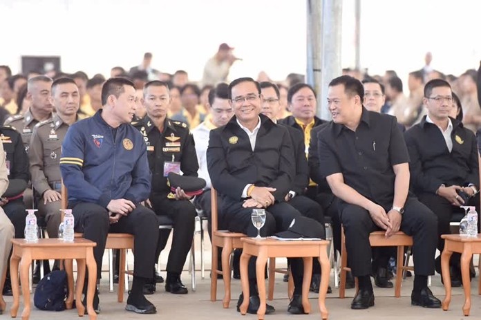 The Prime Minister, together with the Deputy Prime Minister and Pubilc Health Minister, Anutin Charnvirakul; the Transport Minister, Saksayam Chidchob and the Deputy Minister of Transport, Songsak Thongsri, visited Phrong Maduea subdistrict in Nakhon Pathom province to inspect the progress of the 96-kilometer Bang Yai – Kanchanaburi Intercity Motorway project. The motorway is to facilitate logistics and land transport between Greater Bangkok and the western provinces of Thailand. The project is aimed at strengthening the domestic economy and improving people’s quality of life.