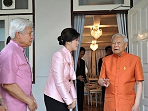 Following the 15-minute meeting between the premier, her deputies and Gen Prem, the three deputies left the scene to wait outside the house while Ms Yingluck was inside with the privy council president.