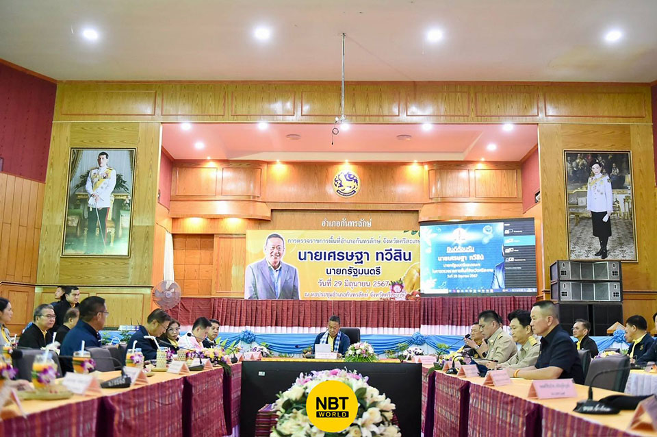 Prime Minister Srettha Thavisin is visiting Si Sa Ket province to oversee key government initiatives and tackle pressing issues such as drug trafficking, environmental conservation, and water management. The visit began at the Kantharalak District Office, where he discussed the region’s robust measures against drug trafficking.