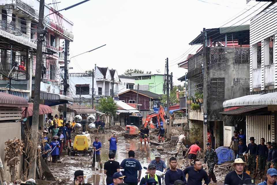 At Ban Ko Sai Soi 9, where the Prime Minister made her first stop, officials were actively clearing mud to reopen pathways and assist residents in removing debris from their homes. The Prime Minister addressed the public during her journey, stating that major roads in the central areas would be cleared by 1st October, but a complete recovery of Mae Sai would require 45 more days before homes could be fully restored and livable. She acknowledged that some homes were completely destroyed, with severe damage that would require substantial compensation under existing laws.