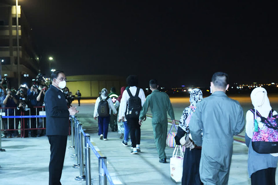 Gen Prayut and Don Pramatwinai have welcomed 78 Thai citizens returning from war-torn Sudan at Don Mueang Royal Thai Air Force Base.