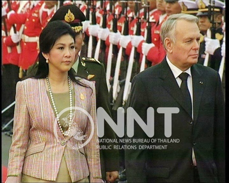 PM Yingluck, on Tuesday, welcomed French Prime Minister Jean-Marc Ayrault and his spouse, who have been on the official visit to Thailand, as guests of the government during 4-5 February.