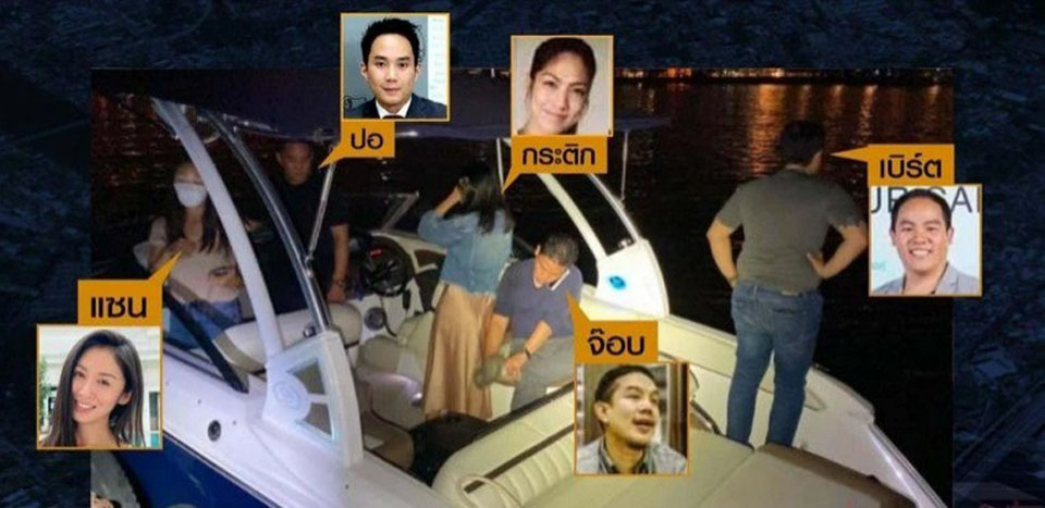 The five were reportedly traveling aboard a speedboat last Thursday night when Tangmo fell overboard and drowned. (TNA)