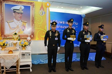 Along with Mr. Apinan, 11 other senior executives of the Government Public Relations Department were also presented with the royal cards in front of the photo of His Royal Highness.