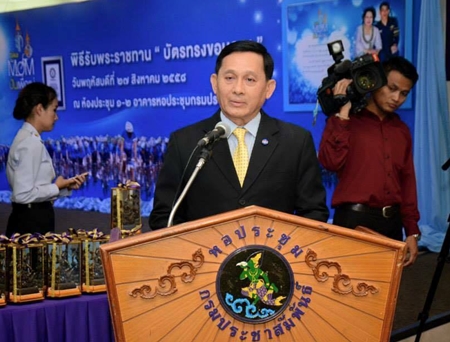 Director General of the Government Public Relations Department Apinan Juntarungsri, who was the secretary general of the PR committee for the “Bike for Mom” program, on Thursday chaired the ceremony in which the royal cards of appreciation from His Royal Highness Crown Prince Maha Vajiralongkorn were presented for all involved in the project.