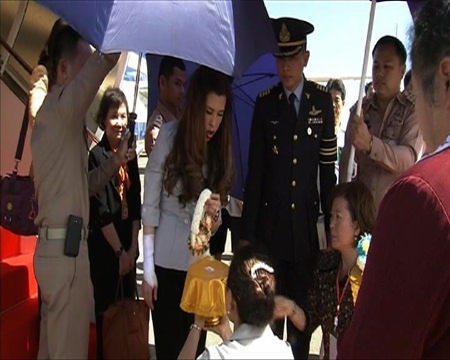 The Princess, in her capacity as honorary president of the PMMV Foundation, is visiting Trat, Chanthaburi, Rayong and Chonburi during August 13 to 19, 2014. Her Royal Highness arrived at U-tapao airport of the Royal Thai Navy in Ban Chang District, Rayong, yesterday afternoon. On hand to welcome Her Royal Highness were the Governor of Rayong, the provincial court chief, the commander-in-chief of the Royal Thai Fleet, the commander of the 14th Military Circle, and representatives of provincial government units.