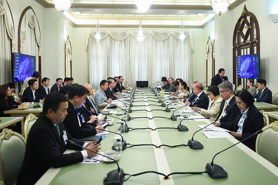 The Joint Standing Committee on Commerce, Industry, and Banking (JSCCIB)—comprising the Thai Chamber of Commerce, the Federation of Thai Industries, and the Thai Bankers’ Association—met with Prime Minister Paetongtarn Shinawatra at the Thai Khu Fah Building in Government House to discuss measures to mitigate the effects of Trump’s renewed trade policies.