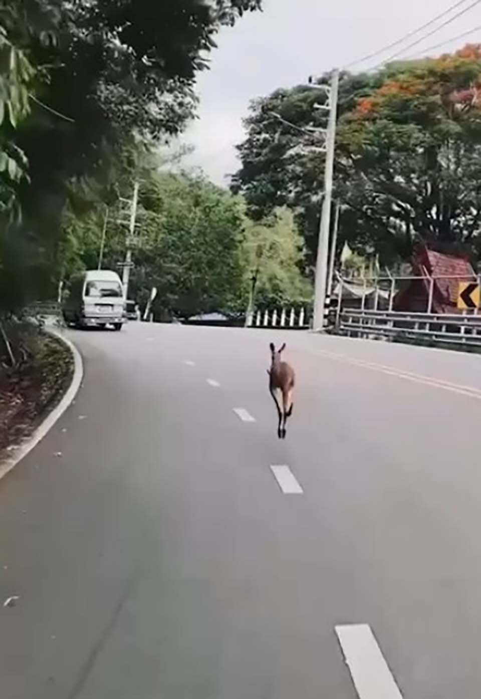 The officials from Doi Suthep-Pui National Park were also stunning from the unexpected appearance of the kangaroo which hopped along the road around the foot of Doi Suthep, near Wat Sisoda in Chiang Mai.