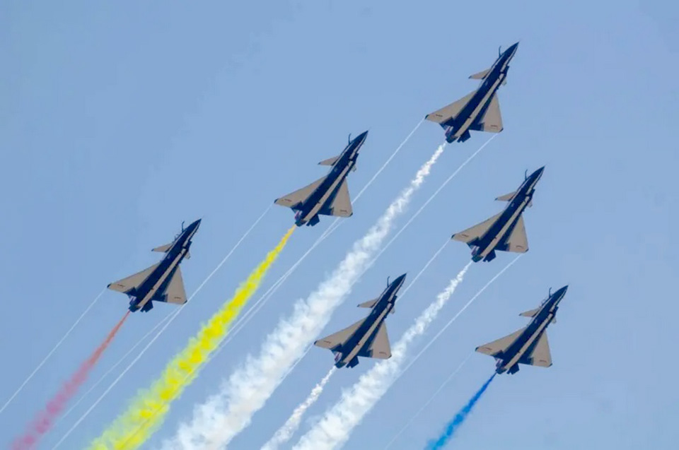 In addition, aerobatic teams from friendly nations, including the August 1st aerobatic team from the Chinese Air Force flying J-10 fighter jets and the Surya Kiran aerobatic team from the Indian Air Force with Hawk Mk.132 aircraft, also participated in the rehearsal.