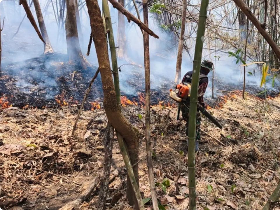 The blaze affected about 70 rai of dry dipterocarp and mixed deciduous forest. A total of 24 personnel from park protection units and patrol teams were involved in the operation, working under challenging conditions to contain the fire and prevent further spread.