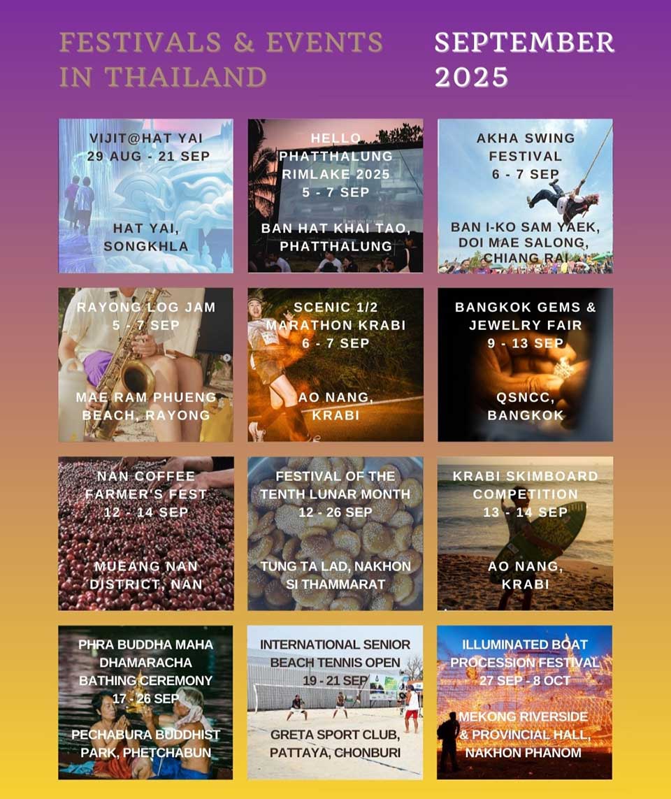 BANGKOK, Thailand – This September 2025, Thailand is bursting with colors from a wide range of festivals and activities — from centuries-old traditions, international fairs, to thrilling outdoor adventures.