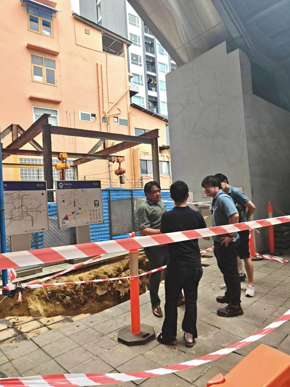 Sidewalk collapse near ‘Fai Chai’ BTS Station in Bangkok