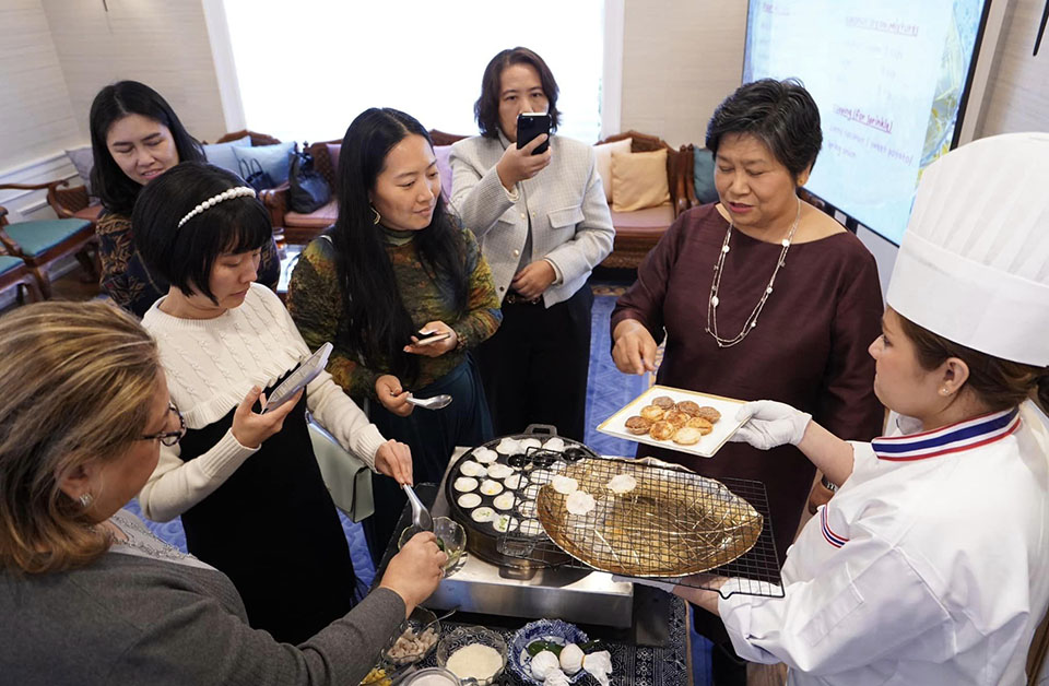 The Royal Thai Consulate General invited Chef Hong Thaimee, a distinguished Thai chef renowned for her exceptional culinary skills in the United States and several other countries, to share insights into Thai cuisine and delicacies. Additionally, the event also provided a platform for attendees to participate in making ‘Khanom Krok’ or Thai-style Coconut Pancake, fostering an environment of knowledge-sharing, enjoyment, and lasting impressions.