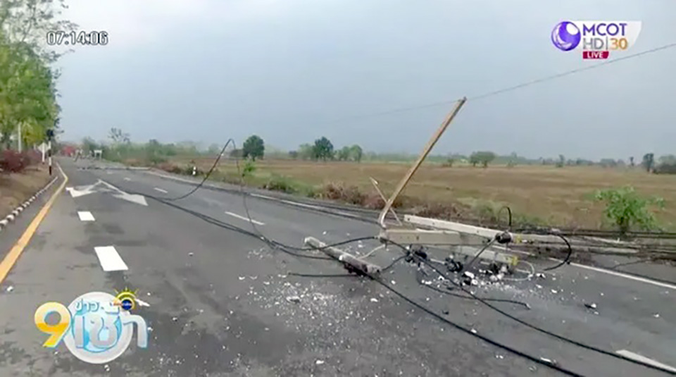 In Payao, the storm battered Dok Kham Tai district and downed power poles. Authorities spent hours to restore the power in Muang and Dok Kham Tai districts. (TNA)