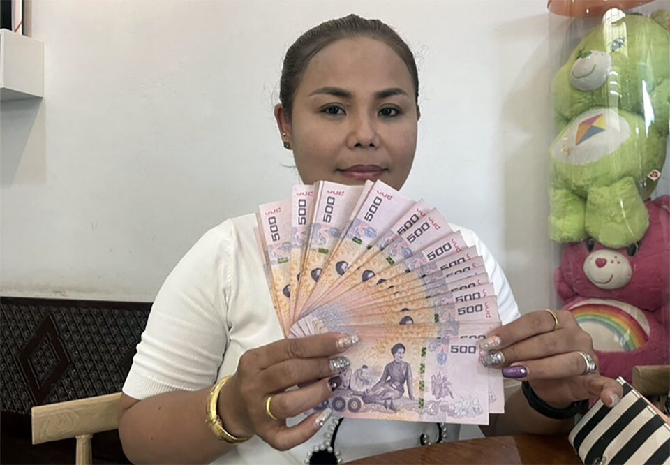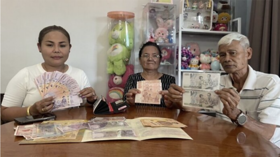 BANGKOK, Thailand – A woman from Surat Thani has proudly displayed over 30 banknotes featuring Queen Sirikit, the Queen Mother, on the back, kept carefully as part of her personal collection. She believes the notes bring prosperity to her family and smooth sailing in her marriage and career.