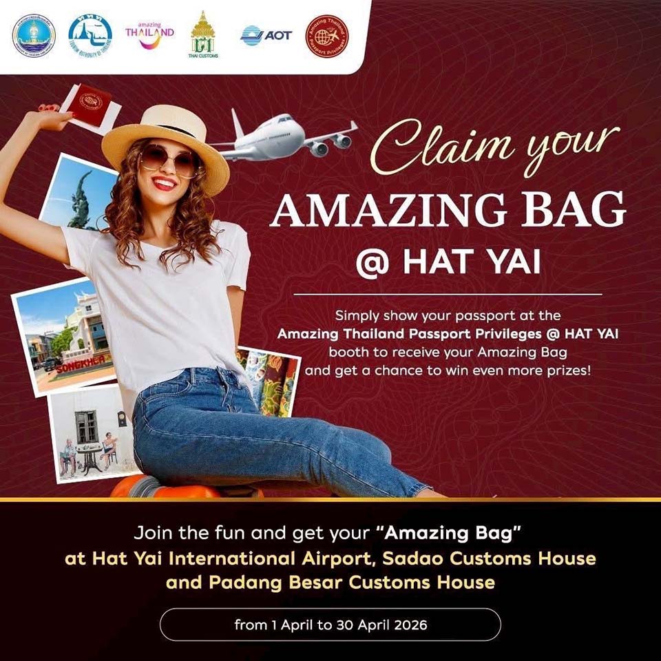 HAT YAI, Thailand – The Tourism Authority of Thailand (TAT) announces the launch of Amazing Thailand Passport Privileges @ HAT YAI, a series of on-the-ground initiatives designed to revitalise tourism across Southern Thailand. Running from 1 to 30 April 2026, the campaign features the “Amazing Bag” gifting activity, a lucky draw with prizes worth over 500,000 Baht, and exclusive privileges redeemable at more than 100 outlets across the region.