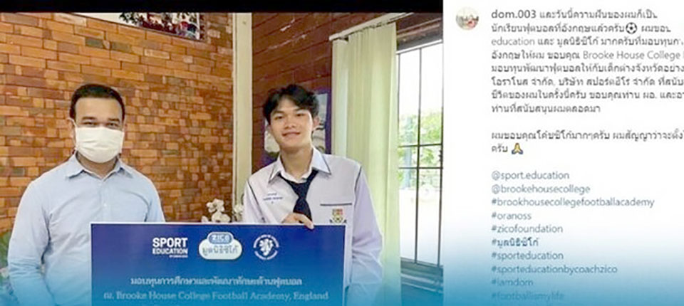 After the successful Tham Luang rescue operation, Dom obtained a footballer scholarship to study at Vachiralai School in Saraphi district of Chiang Mai and is among the young footballers of Chiang Mai province. The Zico Foundation’s scholarship for his study in Britain is the latest development of Dom.