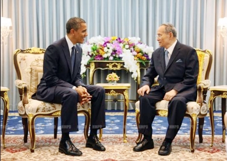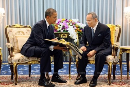 The US president paid a courtesy call on the 84-year-old King, the world’s longest-reigning monarch, at Siriraj Hospital where he has been staying for nourishment to regain his strength since September 2009 when he was admitted with fever, fatigue and a lung inflammation.