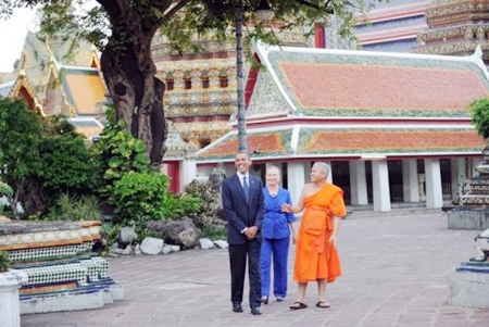 Earlier Sunday, the US president visited Wat Pho Royal Monastery upon arrival. A monk gave him and Secretary of State Hillary Clinton a private tour of the temple.