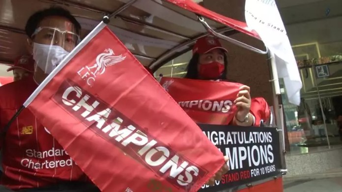 Liverpool F.C. fans on Friday joined a ‘tuk-tuk’ parade in Bangkok to celebrate the club’s first Premier League title.