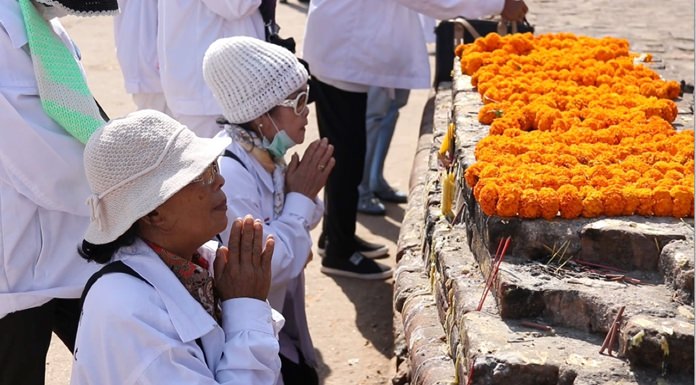 The pilgrims, who are from the far South of Thailand, traveled to India late last month on a trip organized by Internal Security Operations Command Region 4. They traveled to Uttar Pradesh to visit Sarnath, where the Dhamek Stupa is located. It was built by the Great Indian Emperor Ashoka of the Maurya Dynasty to house the Lord Buddha’s relics.