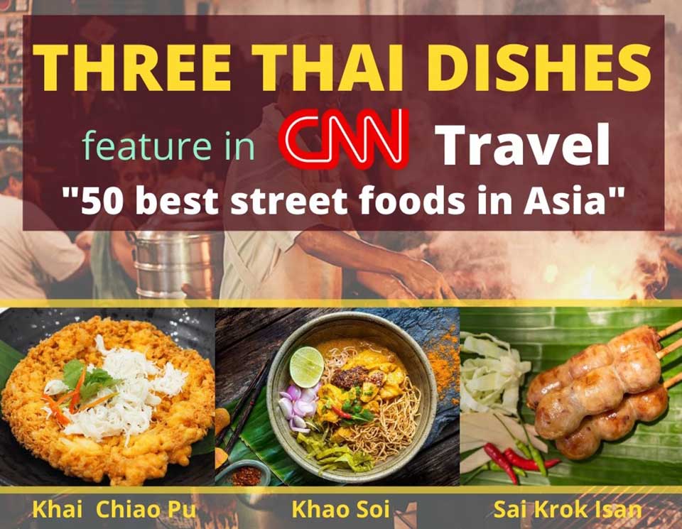 Three distinctive and delicious Thai street foods appear in CNN’s Travel’s list of 50 of the best street foods in Asia.