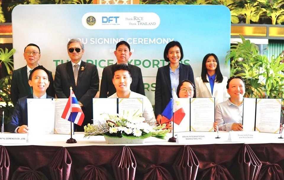 Thailand has signed nine Memoranda of Understanding (MOUs) to export over 130,000 metric tons of rice to the Philippines, valued at more than 2.8 billion baht.
