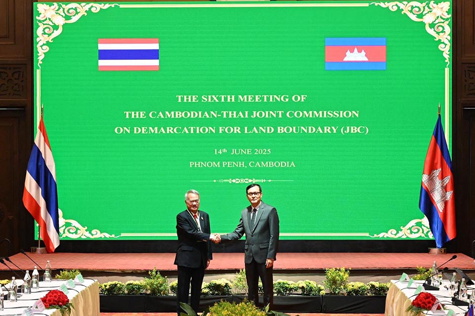PHANOM PENH – Ambassador Prasas Prasasvinitchai, Co-Chair of the Thailand – Cambodia Joint Boundary Commission (Thai side), jointly chaired the 6th Meeting of the Thai – Cambodian Joint Commission on Demarcation for Land Boundary (JBC) with H.E. Mr. Lam Chea, Minister in charge of the State Secretariat of Border Affairs, Co-Chair (Cambodian side) on 14 June 2025.