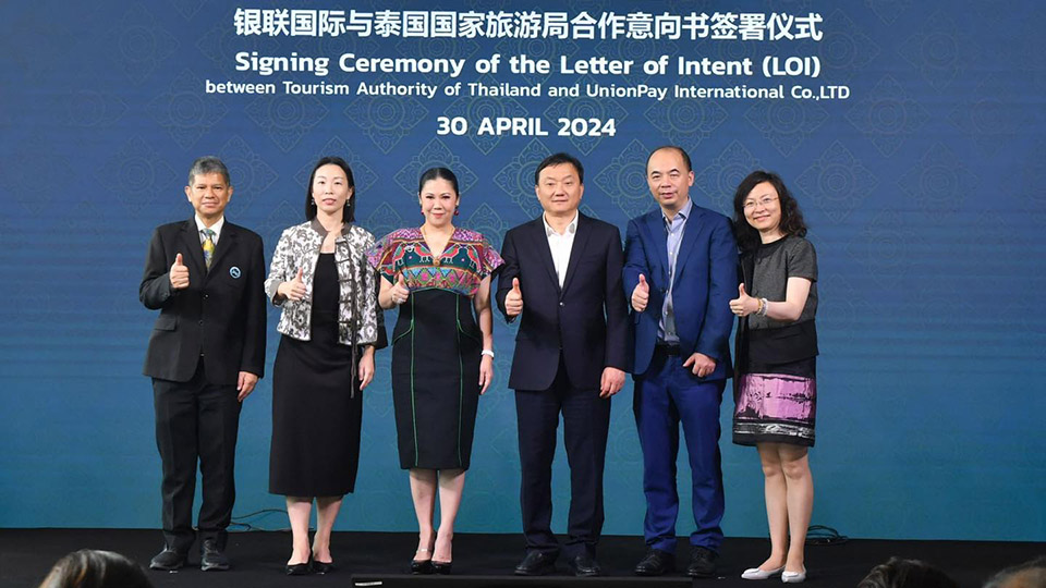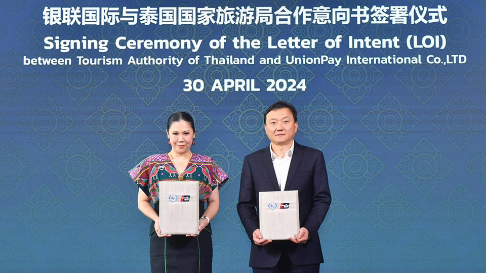 The Tourism Authority of Thailand (TAT) and UnionPay International (UPI), a global leading card scheme, have signed a Letter of Intent (LOI) to enhance cooperation in the promotion of Thailand’s quality tourism experiences for Chinese visitors and UnionPay cardholders.