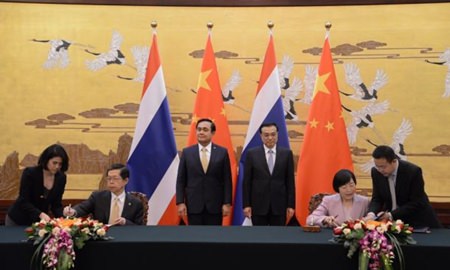 The signing took place during the official visit to China by Thai Prime Minister Gen Prayut Chan-o-cha yesterday and today.