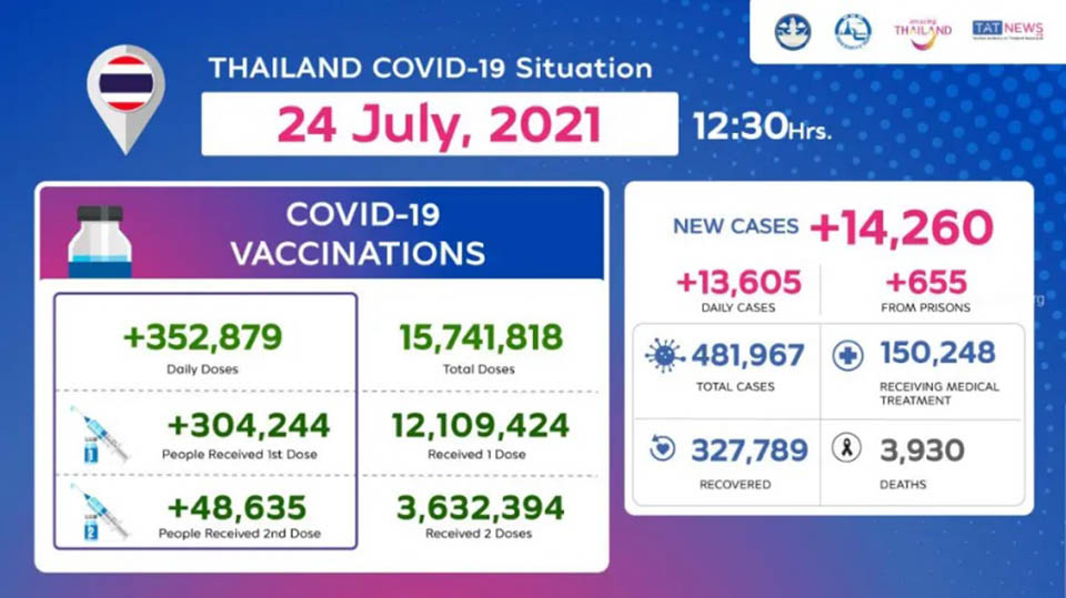 NewsThailandUpdate COVID-19 Thailand COVID-19 Situation as of 24 July, 2021 By Pattaya Mail July 24, 2021 0 1466 Share on Facebook Tweet on Twitter tweet