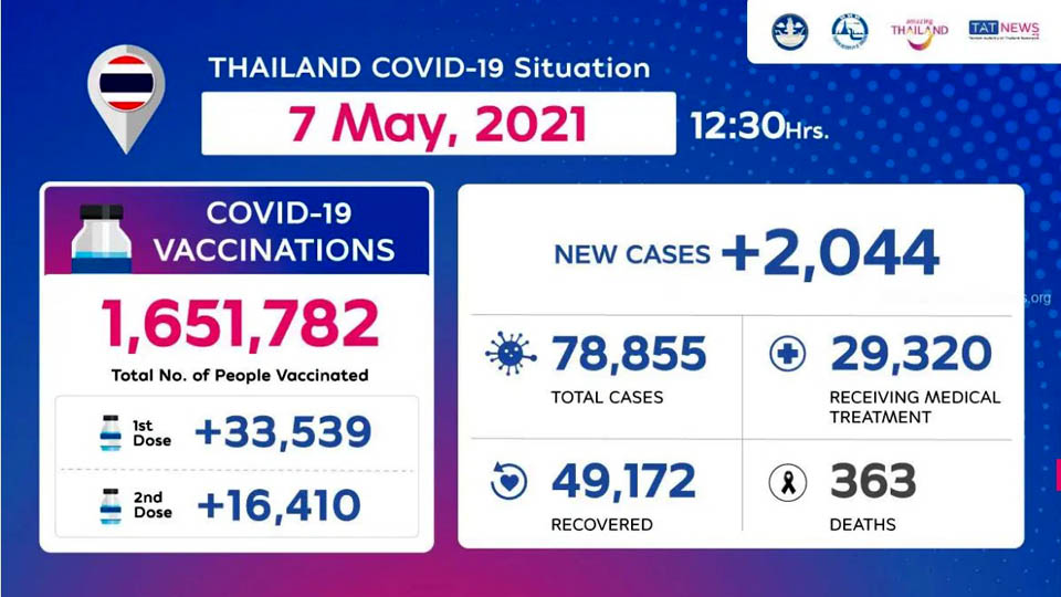 NewsThailandUpdate COVID-19 Thailand COVID-19 Situation as of 7 May, 2021 By Pattaya Mail May 7, 2021 0 1153 Share on Facebook Tweet on Twitter tweet
