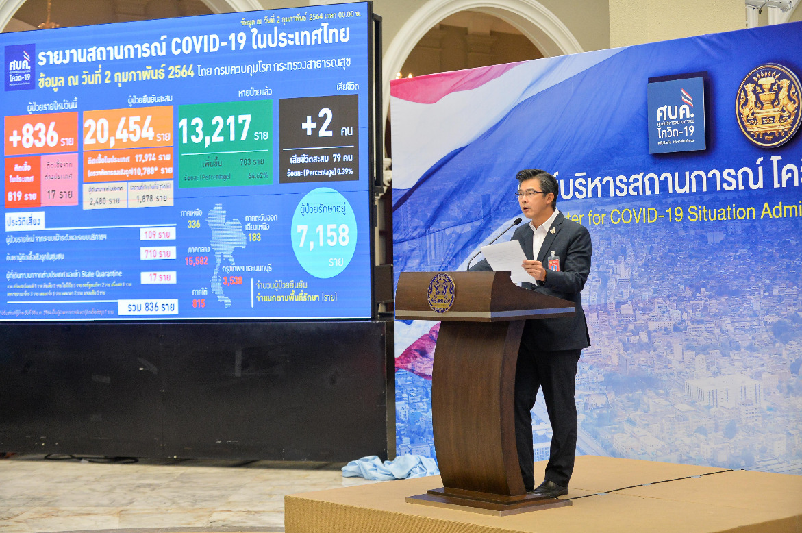 Dr Taweesilp Visanuyothin, spokesman of the Center for COVID-19 Situation Administration (CCSA), said the 836 new cases consisted of 109 found at hospitals, 710 in communities and 17 arrivals in state quarantine facilities.