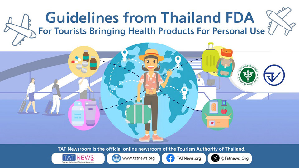 BANGKOK, Thailand – The Tourism Authority of Thailand (TAT) advises travellers to review the latest guidelines from the Thai Food and Drug Administration (FDA) on importing health products for personal use. These guidelines are issued to ensure a smooth, hassle-free entry process, whether health products are brought into Thailand or sent by mail, and support Thailand’s commitment to health and safety standards.