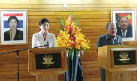 Thai Prime Minister Yingluck Shinawatra and her Papua New Guinea counterpart Peter O’Neil told a news conference that the two countries will work closely to boost investment in various fields including energy, infrastructure and tourism.