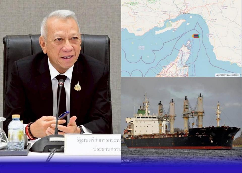 Phiphat Ratchakitprakarn, Deputy Prime Minister and Minister of Transport, orders the Marine Department of Thailand to urgently coordinate rescue efforts after the Thai bulk carrier Mayuree Naree was struck by an explosion while transiting the Strait of Hormuz, leaving three crew members missing as 20 sailors were rescued and brought ashore in Khasab, Oman.