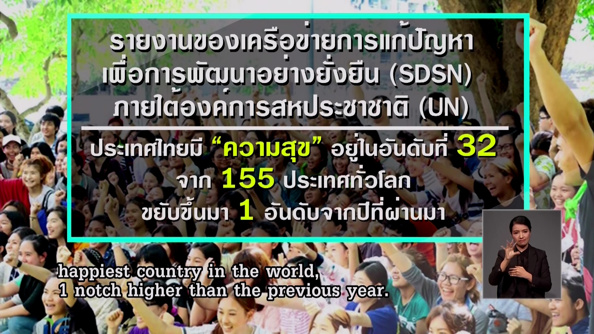 BANGKOK,(NNT) – The Sustainable Development Solutions Network (SDSN) has recently released its survey ranking Thailand 32nd among the happiest countries in the world.