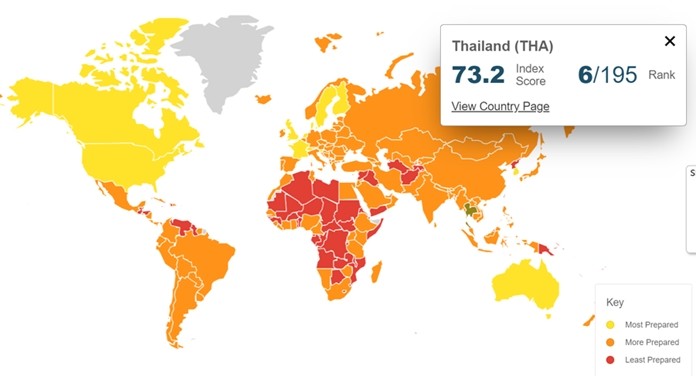 Thailand scored 73.2 out of 100 points. Thailand has been recognized as having the highest level of preparedness to cope with epidemics among 13 countries.