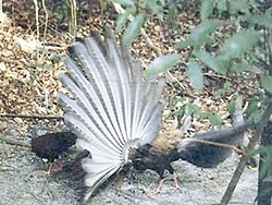 Known as the ‘Phoenix’ in some Asian areas, the Great Argus, or Argusianus argus is a type of pheasant with brown-plumage, a small blue head and neck, a rust-red upper breast, black hair-like feathers on the peak of its head and the back of its neck, with red legs.